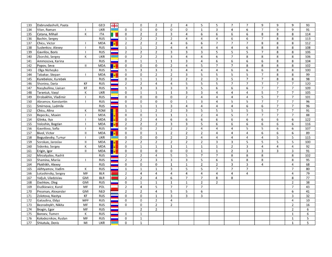 ТАБЛИЦА РЕЗУЛЬТАТОВ 11-ГО МЕЖДУНАРОДНОГО ОНЛАЙН ТУРНИРА ГРИНГРУЗ.2020